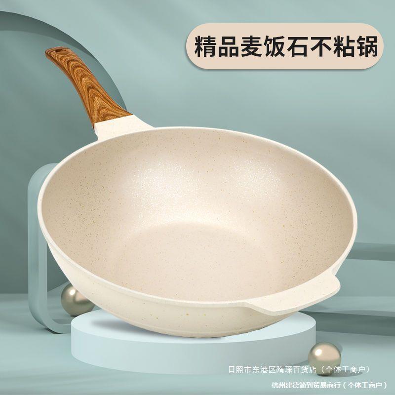 ドイツ産メディカルストーンノンスティックポット家庭用平底中華鍋フライパン無油煙中華鍋ガスストーブ電磁調理器に適しています