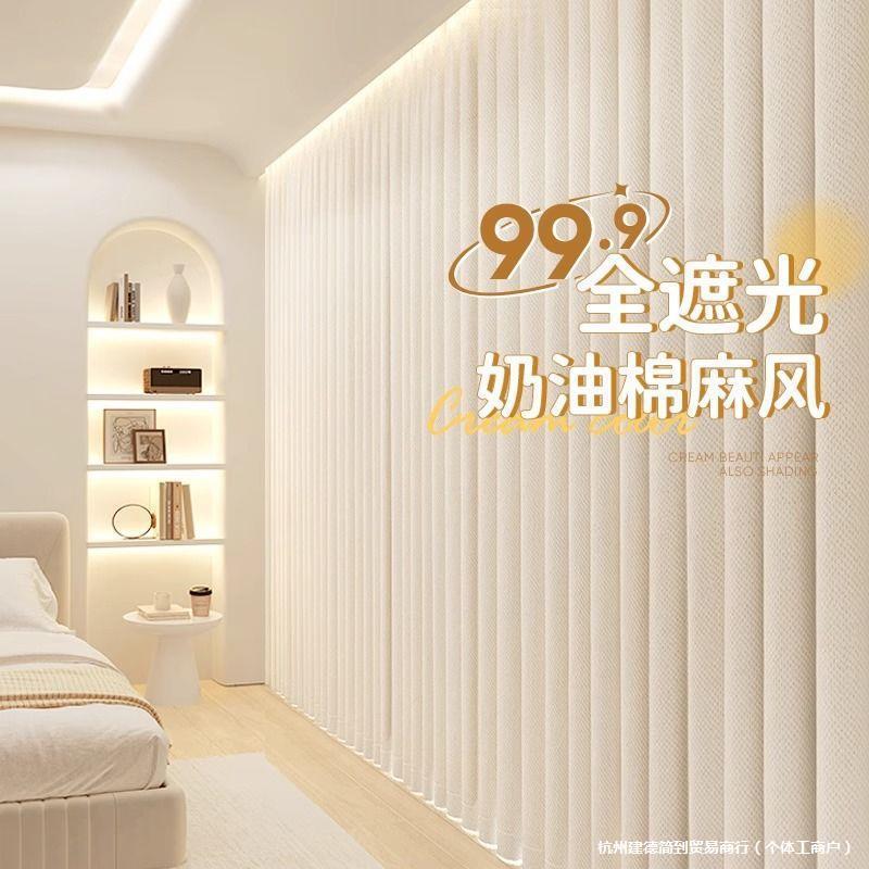 クリームコットンとリネンの完全遮光カーテン2025新しいスタイルのベッドルームハイエンドリビングルームバルコニーサンシェードクリームスタイルライトラグジュアリー