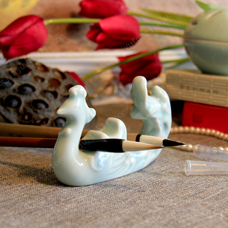 雨の景徳鎮の陶磁器の手作りの工芸のアイデアの家庭の鳳凰の毛筆の棚は筆の棚の家庭の装飾品を置きます。