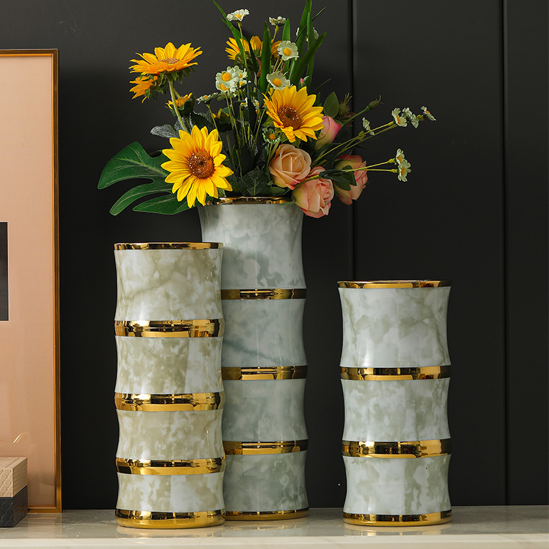 軽豪華風金メッキ景徳鎮竹節花瓶サンプル間ホテルロビー陶磁器花瓶家庭装飾品