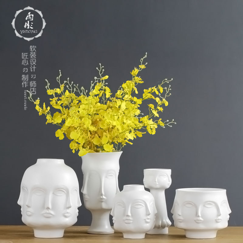 雨のの創意は簡単でファッション的な顔の陶磁器の花の挿し込みの置物の家庭の柔らかい装飾品の客間の見本の間に飾られます。