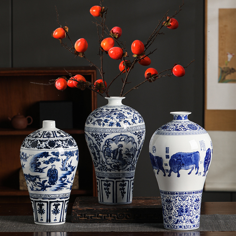景徳鎮の青花磁器の花瓶は高温で、中国式の陶磁器の青花を栽培して陶磁器の花瓶を飾ることができます。