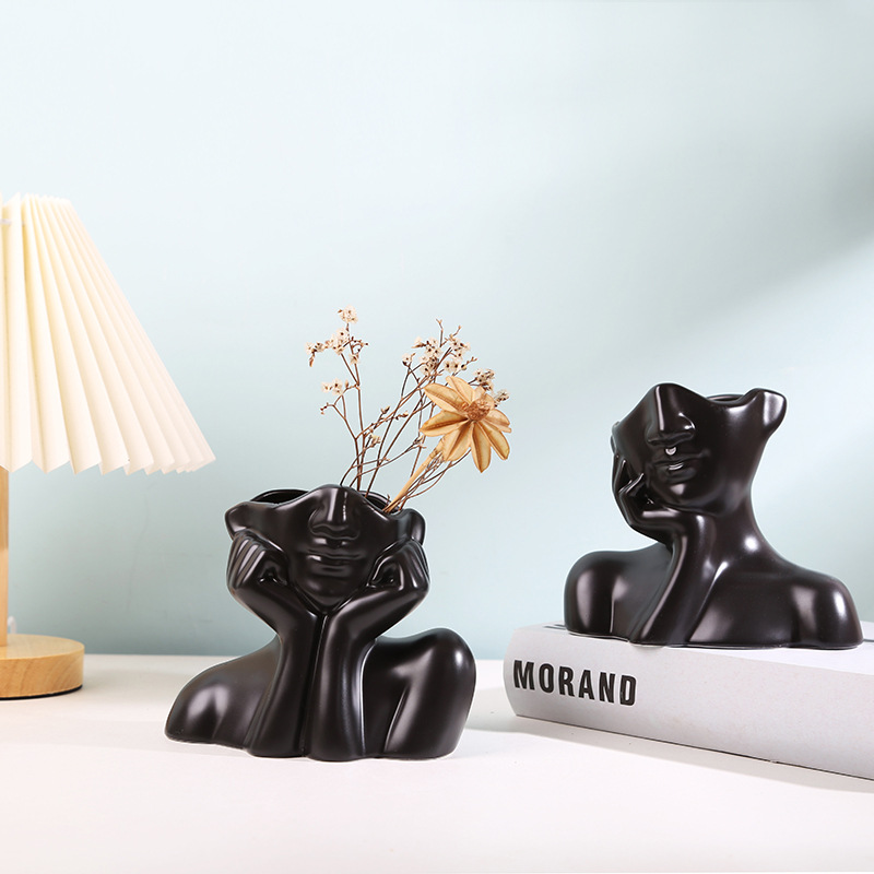 人体陶器乾燥花瓶、素焼き装飾、リビングルーム、民宿、オフィス、家庭用装飾品、陶土フラワーアート、通気性のある花瓶