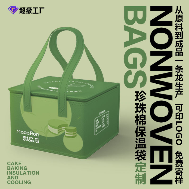 カスタムメイドの不織布パールコットン断熱バッグ、厚手のアルミ箔ケーキ・デザート包装袋、生鮮食品用ジッパー付きテイクアウトバッグ