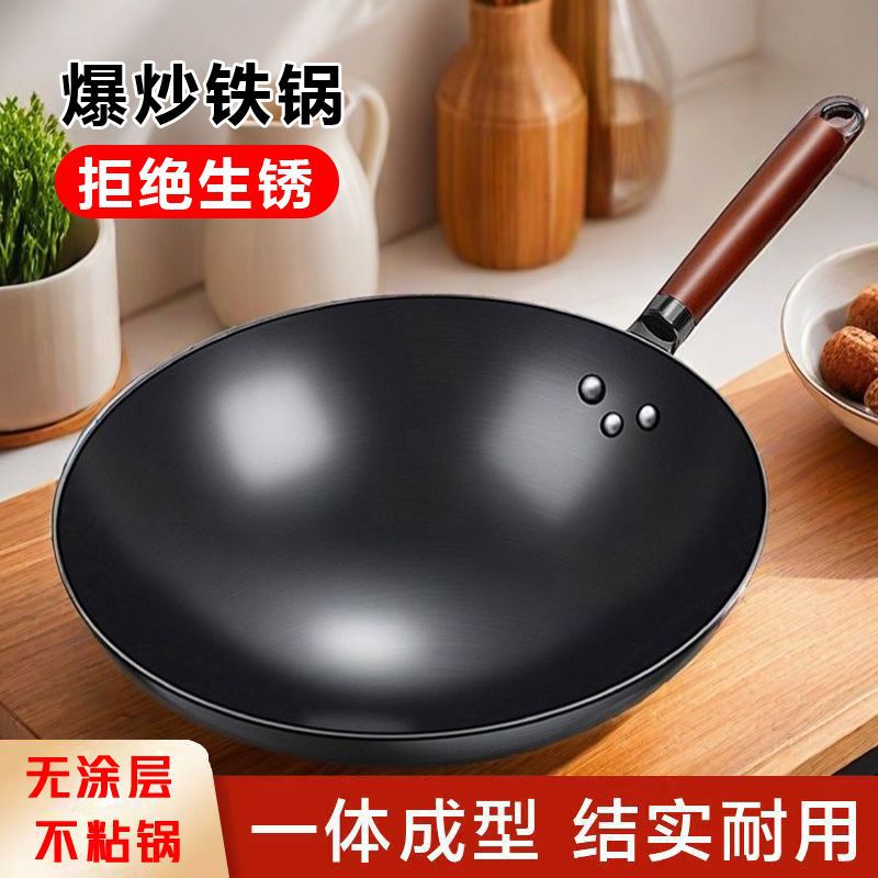 純鉄鍋炒め鍋家庭用炒め鍋手作り鍛造コーティングなし鍋電磁ストーブガスレンジ共通鍋具