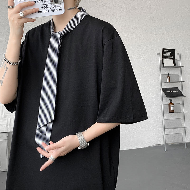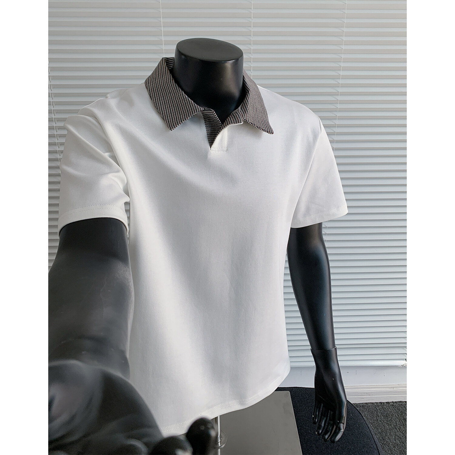 夏服新作tシャツ千鳥格ステッチ折り襟半袖tシャツpoloシャツ夏メンズ半袖poloシャツ