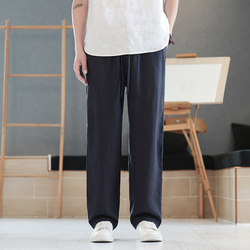 中国風の綿とリネンのカジュアルパンツ紳士服夏薄い大きいサイズルーズストレートパンツ模造リネンカジュアルパンツ男性用
