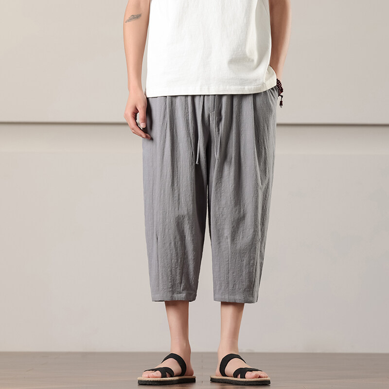 貿易メンズミッドパンツ中国風夏カジュアルパンツゆったり通気性メンズパンツハーレムパンツランタンビーチクロップドパンツ