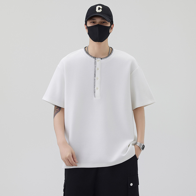 夏メンズ半袖TシャツアメリカンハイストリートTシャツボトリングシャツジッパー装飾半袖Tシャツ大きいサイズTシャツ