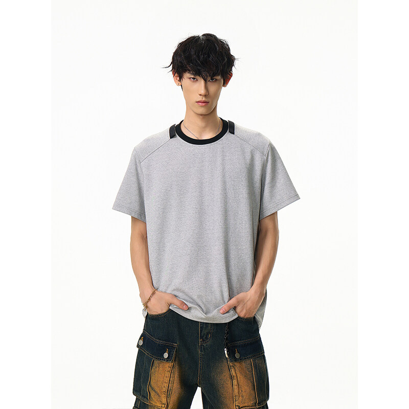 貿易メンズ半袖Tシャツ大きいサイズカジュアルメンズTシャツボトリングシャツカラーブロックネックラインTシャツティーンエイジャー