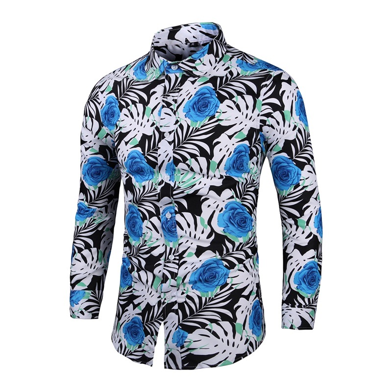 2022春秋の新型長袖の大きいサイズの花のシャツは襟の薄いタイプのカジュアルなプリントのシャツの紳士服の寸のシャツの上着を折ります。