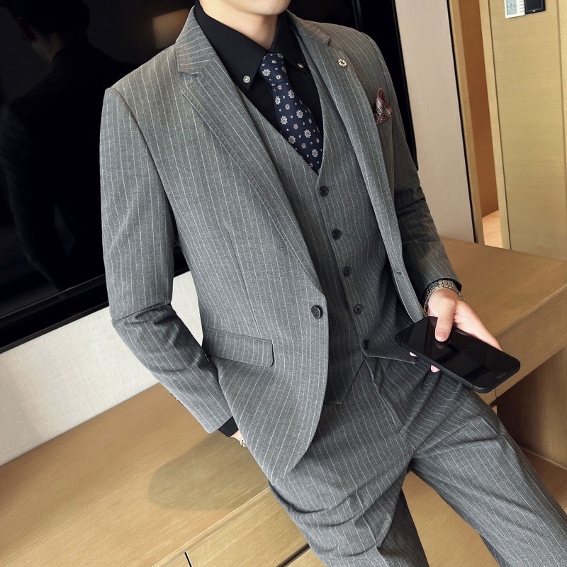 メンズ结婚シングルスーツスーツ縦ストライプ生地スーツ新郎スーツsjt003/p310