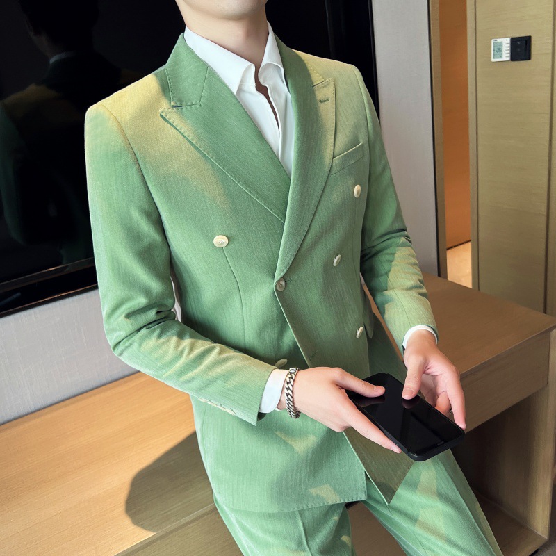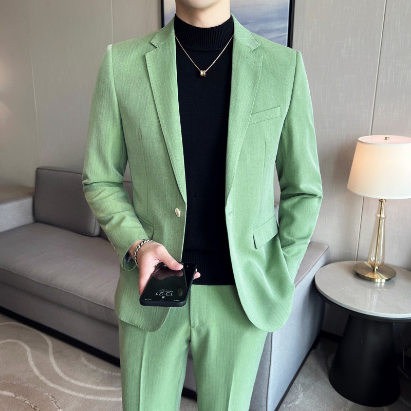 メンズシングルボタンスーツセットアップルグリーン弾力生地スーツ新郎セットljt 903/p240