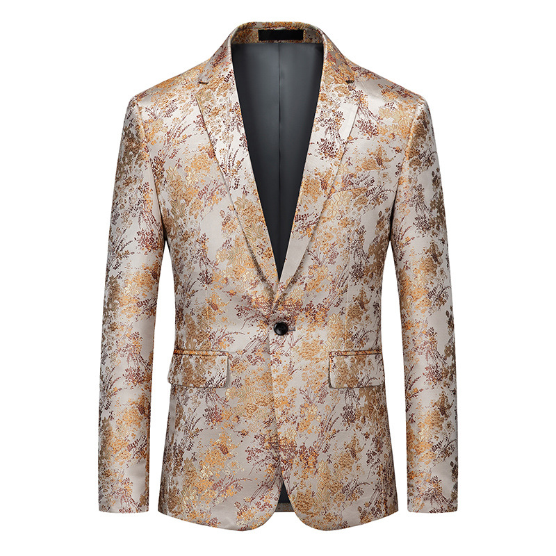2022春と秋の新しい金色のプリントの一粒は大きいサイズのカジュアルなスーツのコートのドレスの司会者のスーツの上着を掛けます。