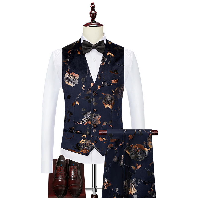2022新しいピンクの花のスーツ秋冬の新しいタイプの男性の修身の一粒はプリントのスーツのカジュアルなコートのドレスを掛けます。