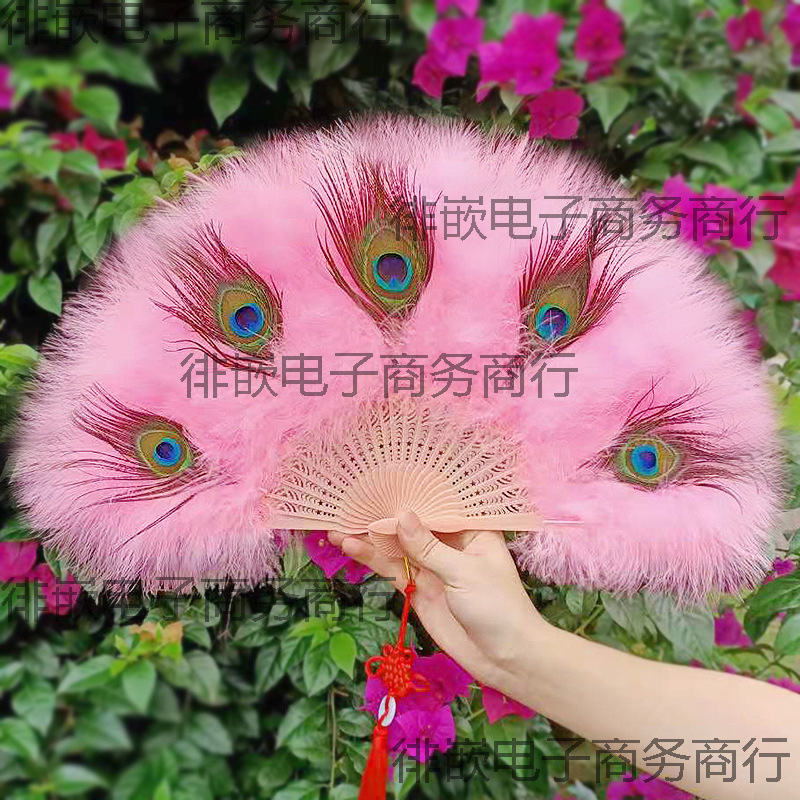 白髪扇子羽扇子チャイナドレス古典的な孔雀装飾扇子ガールハート羽扇子古代スタイルロリータキャットウォーク