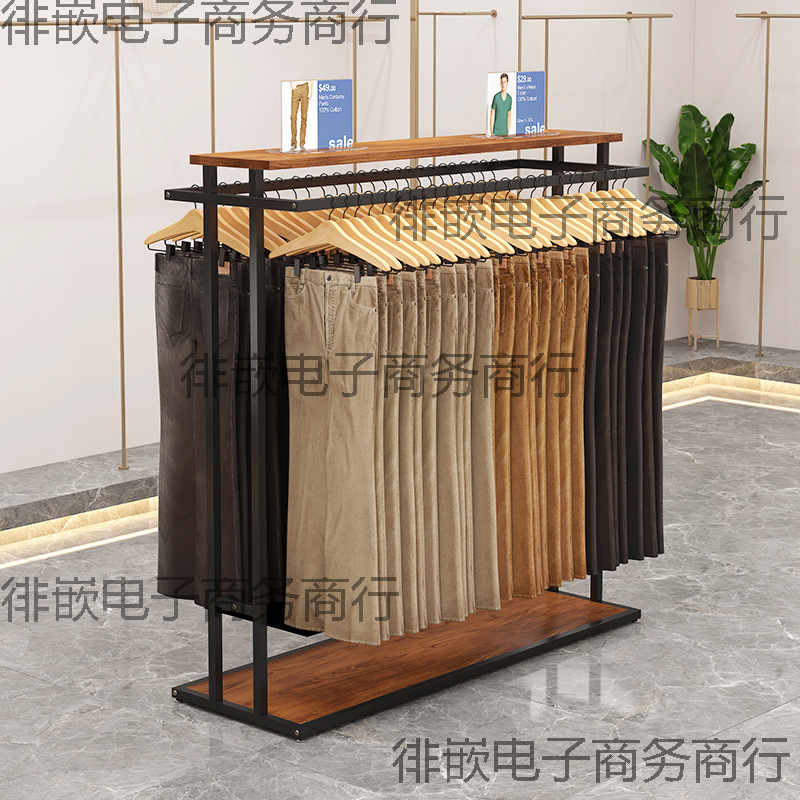 衣料品店のディスプレイラック床置き型ショップ二列ハンガーアイランドディスプレイテーブルパンツ収納ミドルハンガーラック