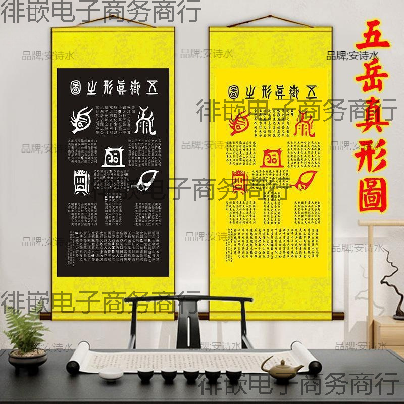 五岳真形図吊り絵研究リビングルームソファ背景装飾絵画中国のスクロールシルク絵画人気