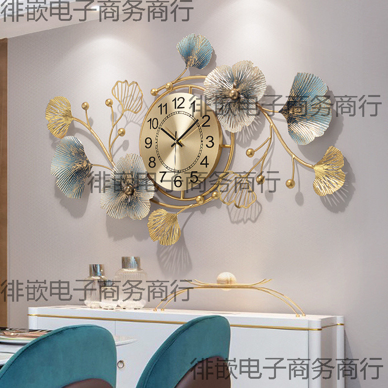 5 クリエイティブ中国時計壁時計リビングルームホームレストランライト高級イチョウの葉雰囲気アート壁時計静的