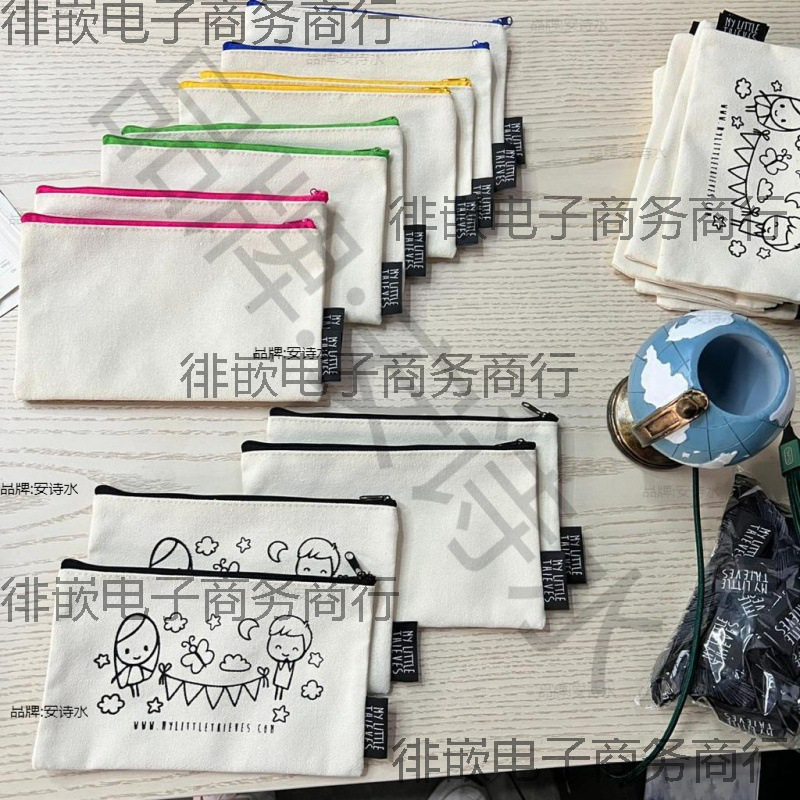 クロスボーダージッパー落書き鉛筆バッグ綿布鉛筆バッグ空白スポット収納鉛筆バッグキャンバス鉛筆バッグ