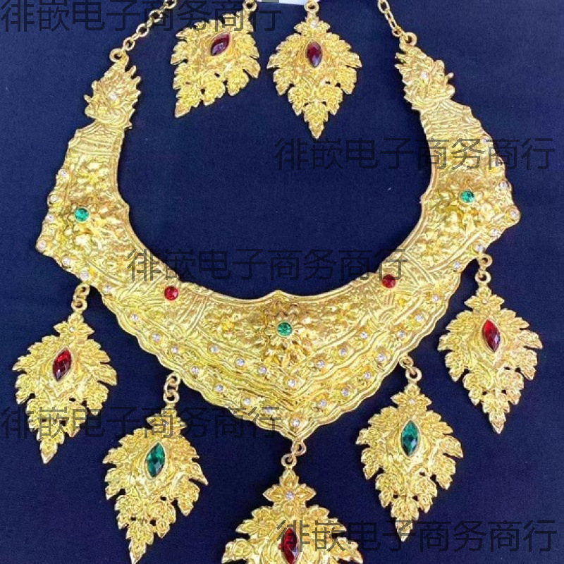 タイネックレスチョーカーイヤリングセット中空金メッキシルバーカラーステージパフォーマンス民族衣装タイ服アクセサリー