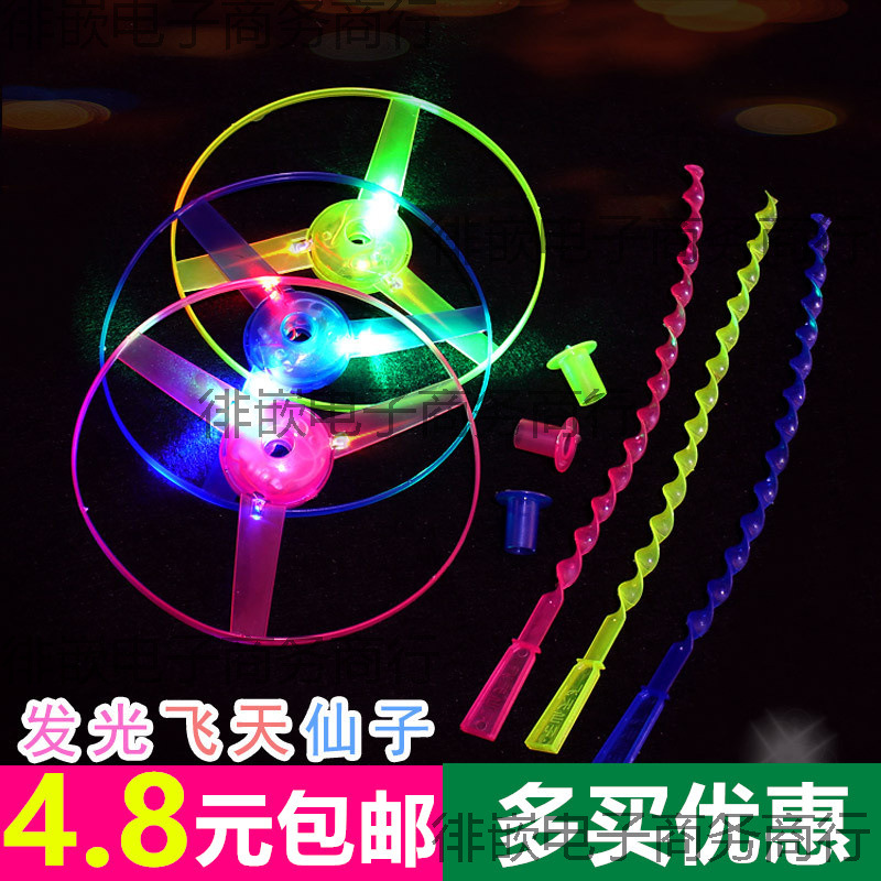 トンボフライハンドプッシュ空飛ぶ円盤竹トンボ屋外フリスビー遊び妖精発光プルライン飛行器具スリングショット子供