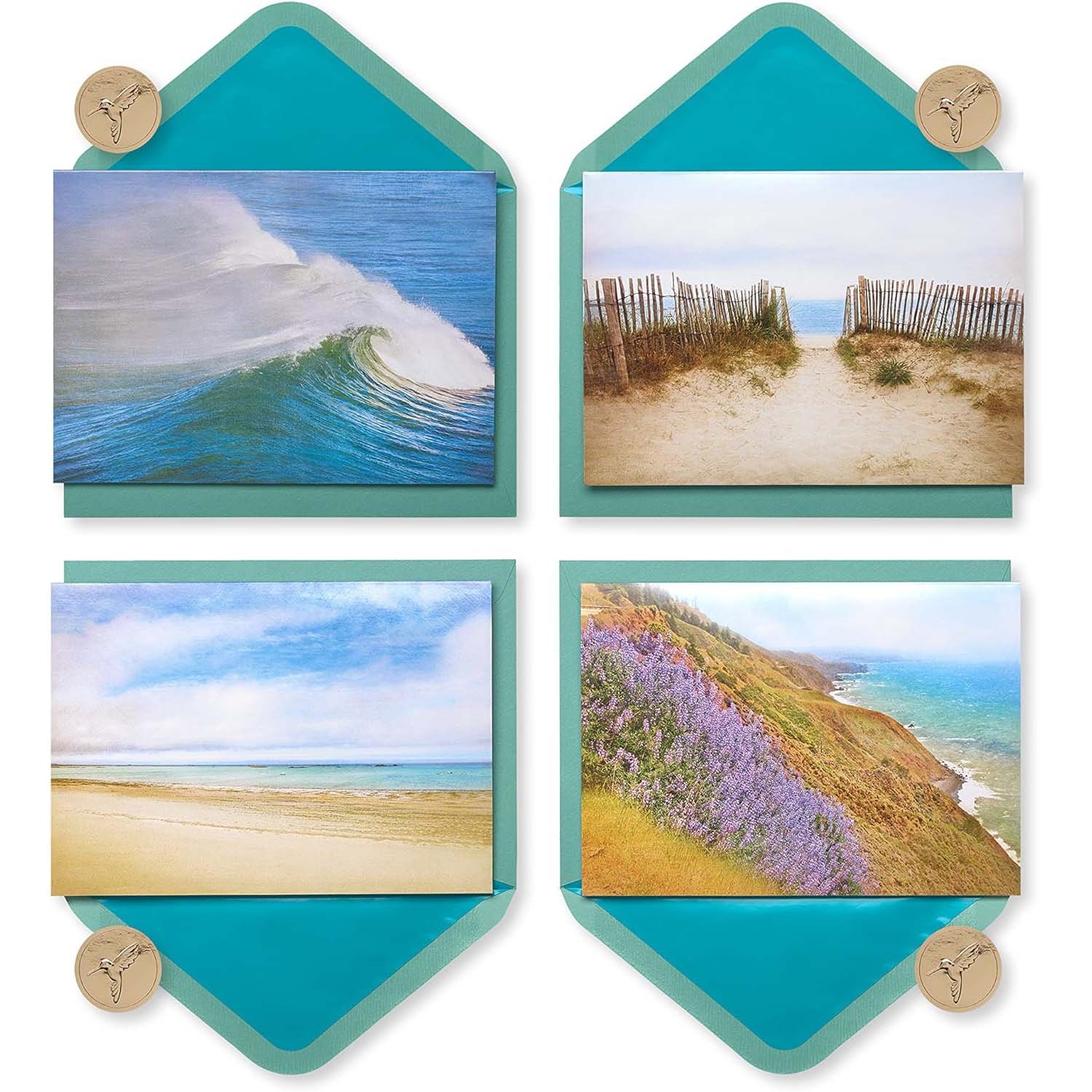 アマゾンの金の美しい風景の夏のビーチカードは封筒の箱の各種の空白の誕生日カードを持っています。
