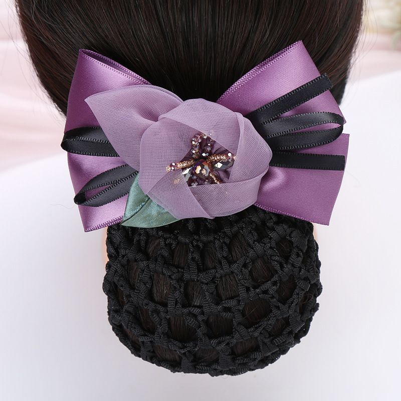 プロの頭の花の韓国版の蝶結びの髪飾りの看護師のスチュワーデスはネットのポケットのホテルの従業員の銀行の出勤ヘアピンを使います。