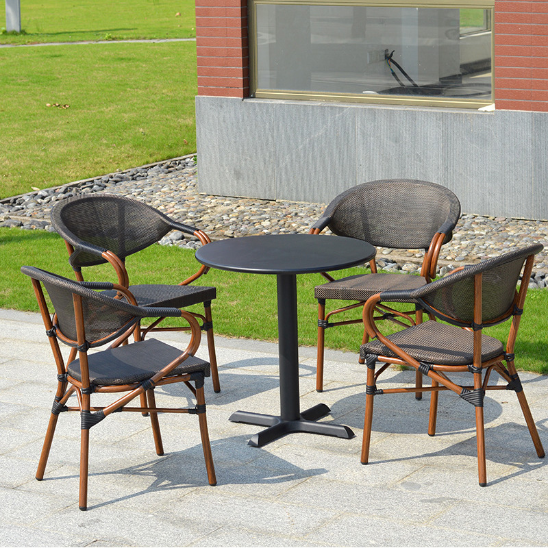 1688屋外のテーブルと椅子の組み合わせの喫茶店のベランダのテーブルと椅子のアルミニウム合金のレジャーの藤編みの椅子のミルクティーの店の室外の藤の椅子