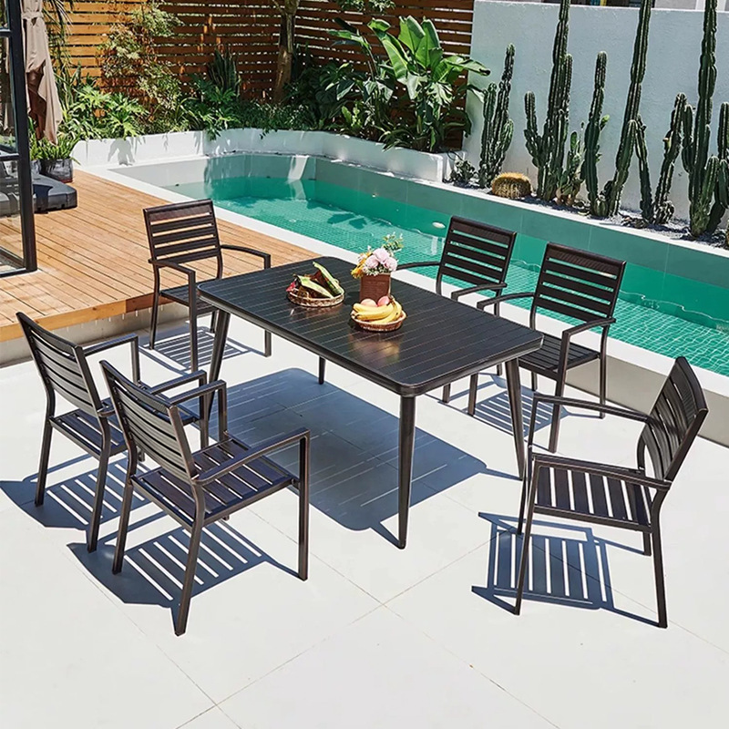 1688屋外プラスチック木製テーブルと椅子中庭防錆木材屋外レジャーダイニングテーブルガーデンオープンエアバルコニーカフェテーブルと椅子の組み合わせ