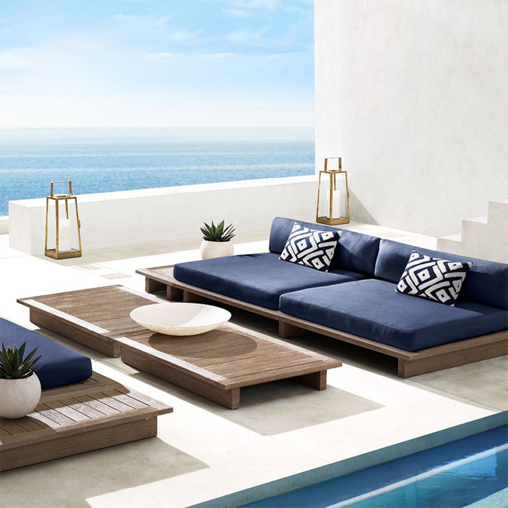 北欧アウトドアチーク材ソファ庭バルコニーサンプル部屋デザイナーソファ屋外別荘ホテルソファセット