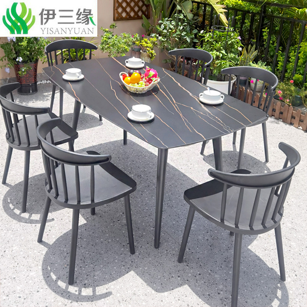 屋外のテーブルと椅子の庭の岩板のレジャーの花園の組み合わせの露天の露店の防水の日焼け止めの簡単な屋外のベランダの食卓