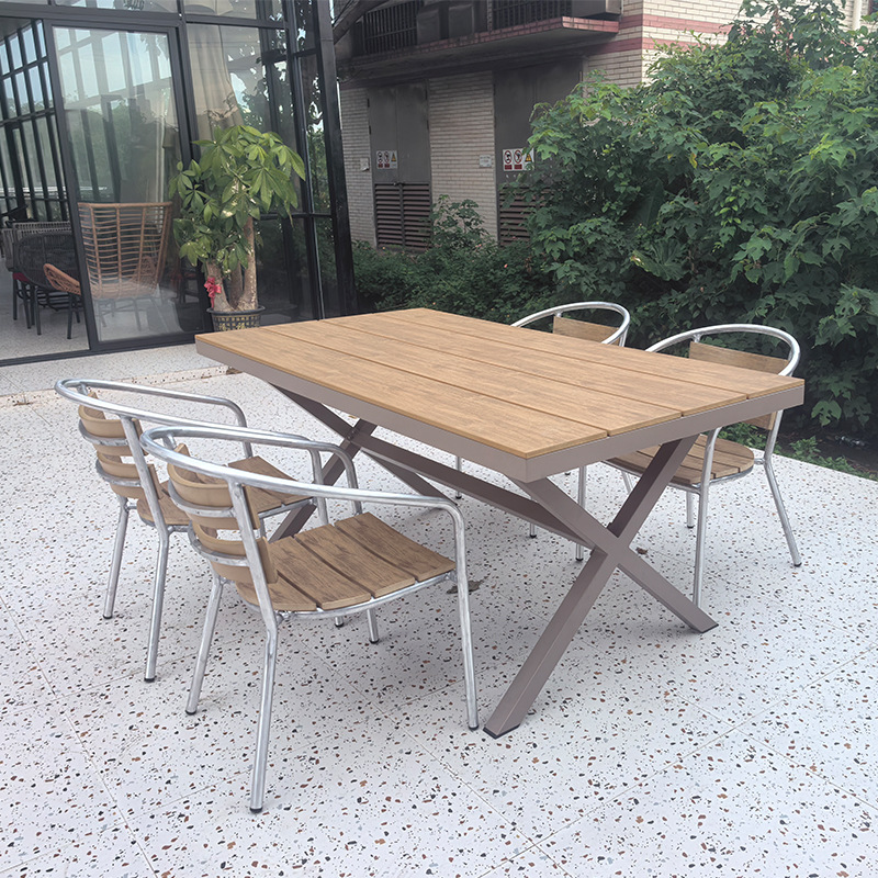 屋外のテーブルと椅子の庭のプラスチック木の屋外のレジャーセットの防腐木のシンプルな露天花園の露店のベランダのテーブルと椅子