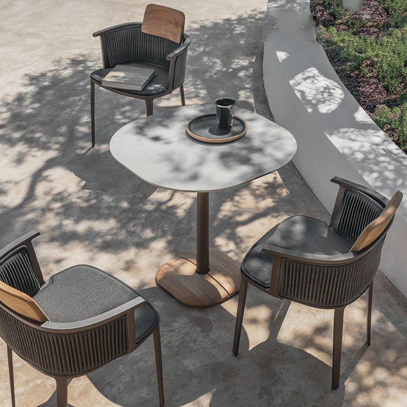 北欧の屋外のテーブルと椅子の組み合わせのモデルルームの設計防水アルミニウム合金の花園の別荘の庭のベランダのレジャーの藤の椅子