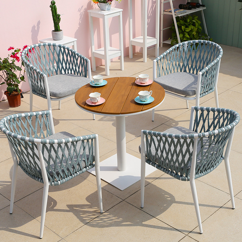屋外のテーブルと椅子の組み合わせの喫茶店のベランダのテーブルと椅子のアルミニウム合金のレジャーの藤編みの椅子のミルクティーの店の室外の藤の椅子