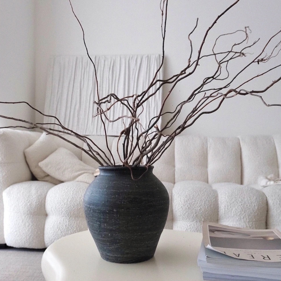 レトロなセラミック花瓶フラワーアレンジメントハイエンドセラミックポット禅わびさびスタイル粗い陶器黒装飾花瓶リビングルームの装飾品