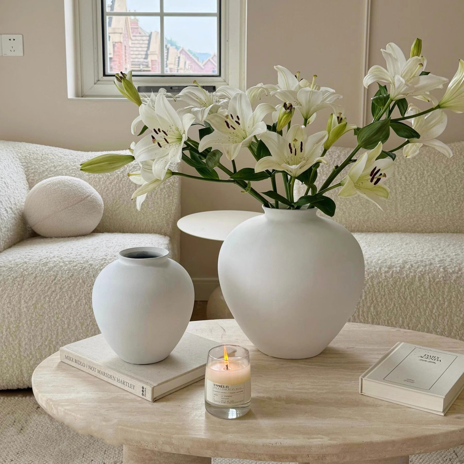 わびさびスタイルのフランスの大きな花瓶白い高級装飾品ダイニングテーブルリビングルームホーム北欧スタイルのレトロなセラミック花瓶