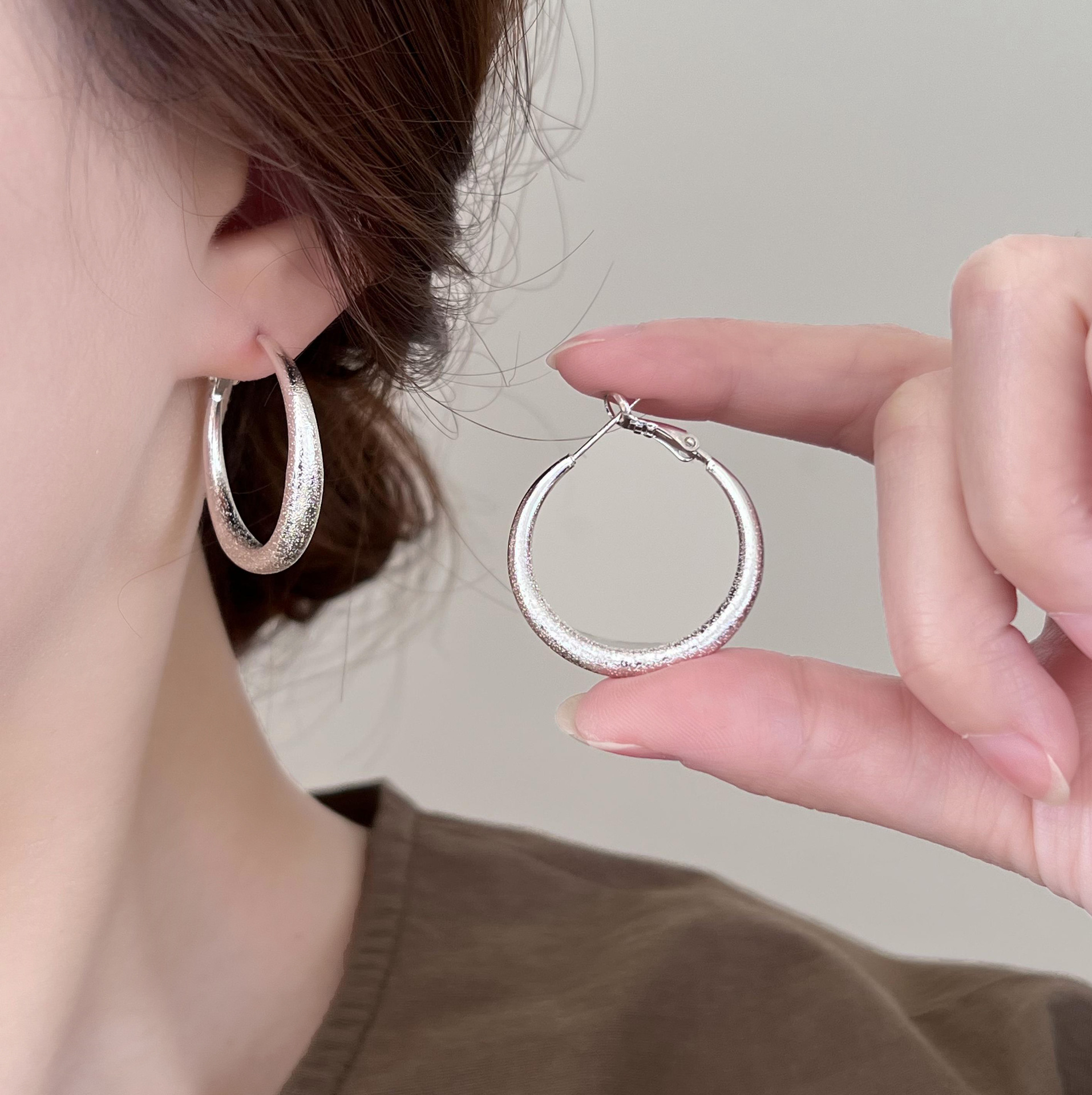 軽い贅沢感のイヤリングの女性の銀色の大衆は耳飾りの2023年の新型の秋冬の冷たい風のピアスを設計します。