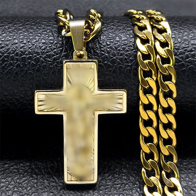 クロスステンレスネックレスセントベネディクトクリスタルセントペンダントクロス男ネックレスジュエリーネックレス