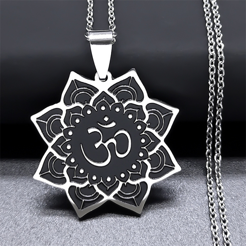 欧米のオーム蓮の花曼荼羅のペンダントのネックレスの女性の生命の花のステンレスの銀色のネックレスの宝石