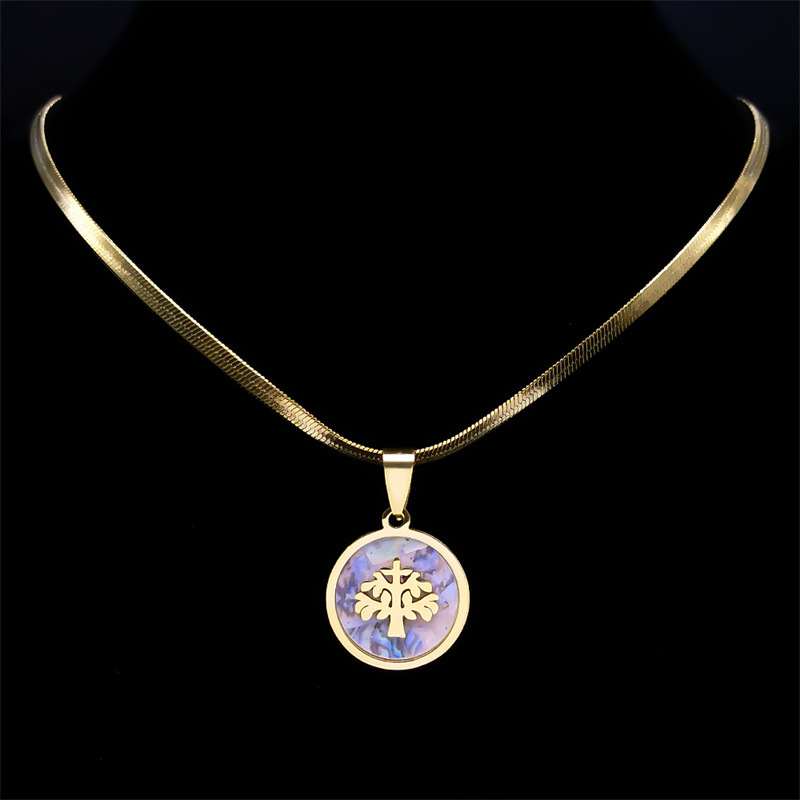 アマゾン生命の木ステンレスペンダントアワビ殻ペンダントネックレス女性用金色チップチェーンネックレスジュエリー