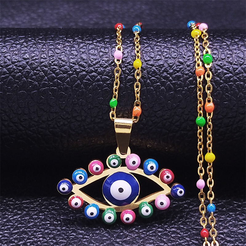 欧米のステンレスカラートルコの目のチェーンのネックレスの女性の金色の魅力のネックレスの装飾品めがね