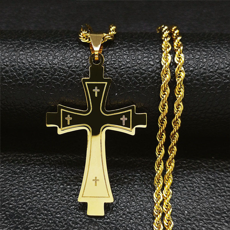 クロスボーダー爆発ステンレス十字ネックレス金色ロングネックレス女性/男性ネックレスジュエリー