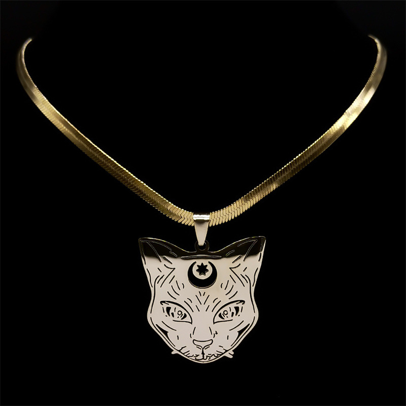 欧米の越境月の猫の頭のネックレスの男性のステンレスの金色の動物のネックレスのアクセサリー