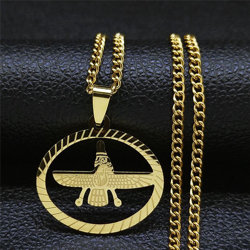 アマゾン热い贩売ステンレスネックレスマツダ楕円形ゾロアスターイランペルシャ帝国ジュエリー