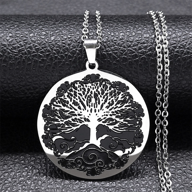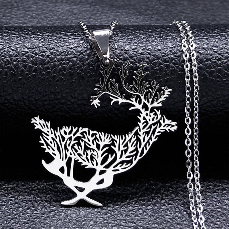 国境を越えたヘラジカ生命樹ペンダント女性鋼色中空ステンレスアクセサリーチタン鋼ネックレス