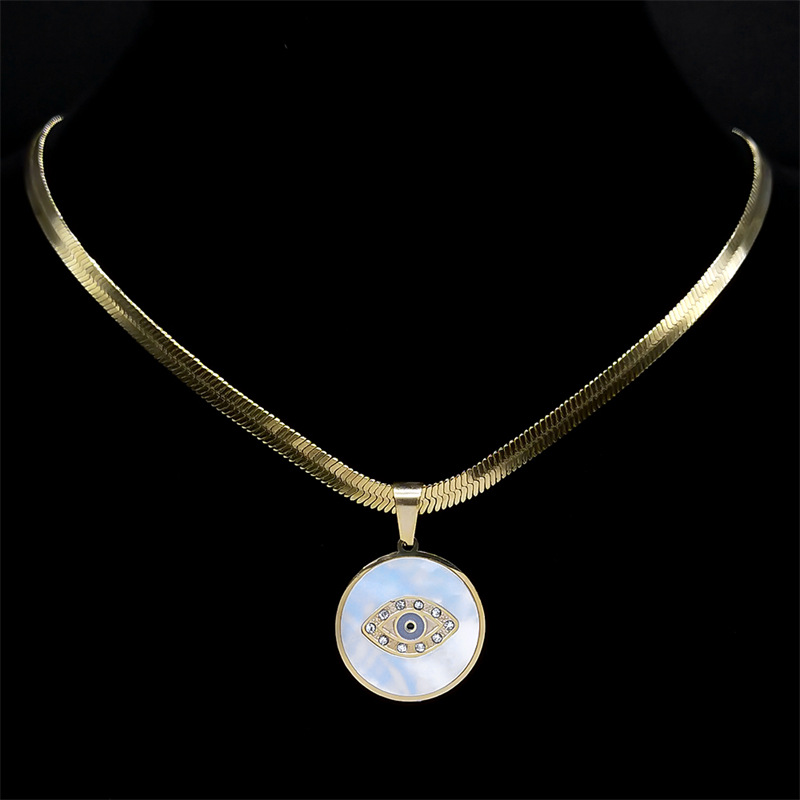 洗練された欧米の邪悪な目水晶貝殻ネックレス女性円形ステンレス金メッキネックレスジュエリーアクセサリー