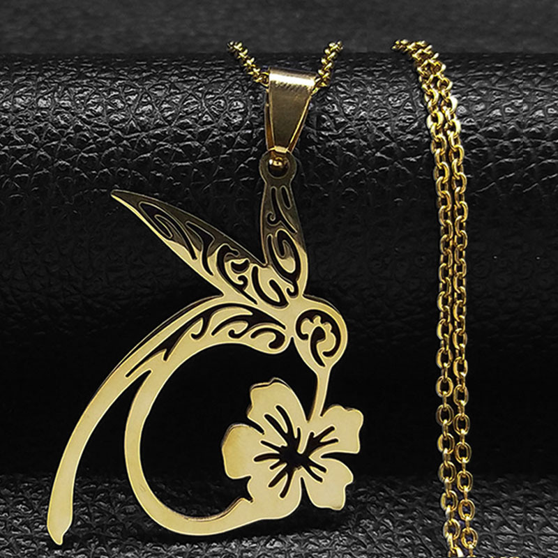 欧米のアクセサリーの爆発金ボヘミアンハチドリの花の透かし彫りのステンレスのペンダントの女性の金色の工場は直接販売します。