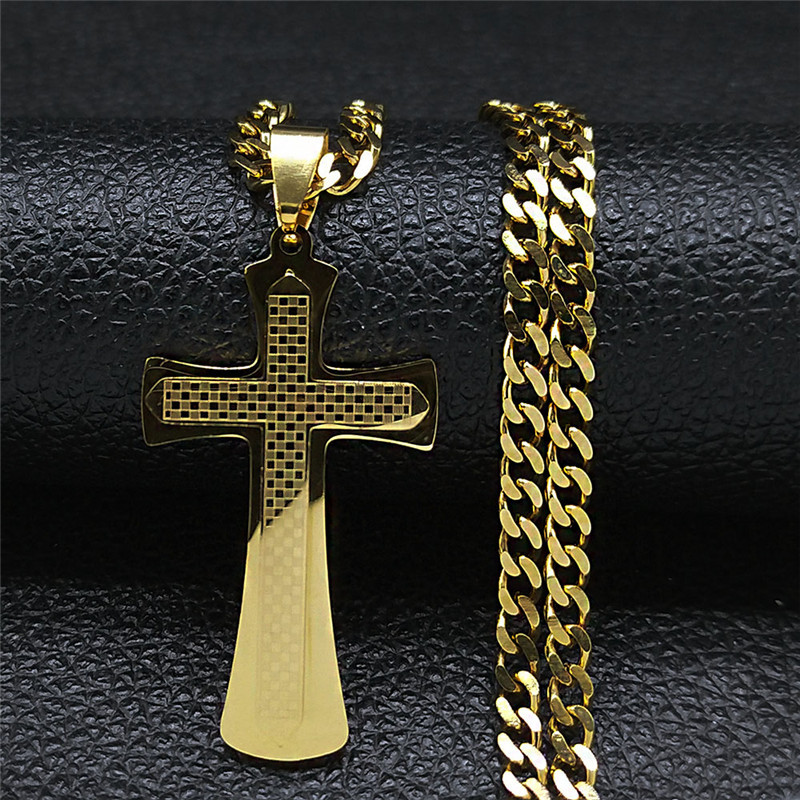 国境を越えたアマゾンステンレスの大きなクロスネックレス男女ヒップホップ金メッキネックレス彼氏誕生日プレゼントnhh 1