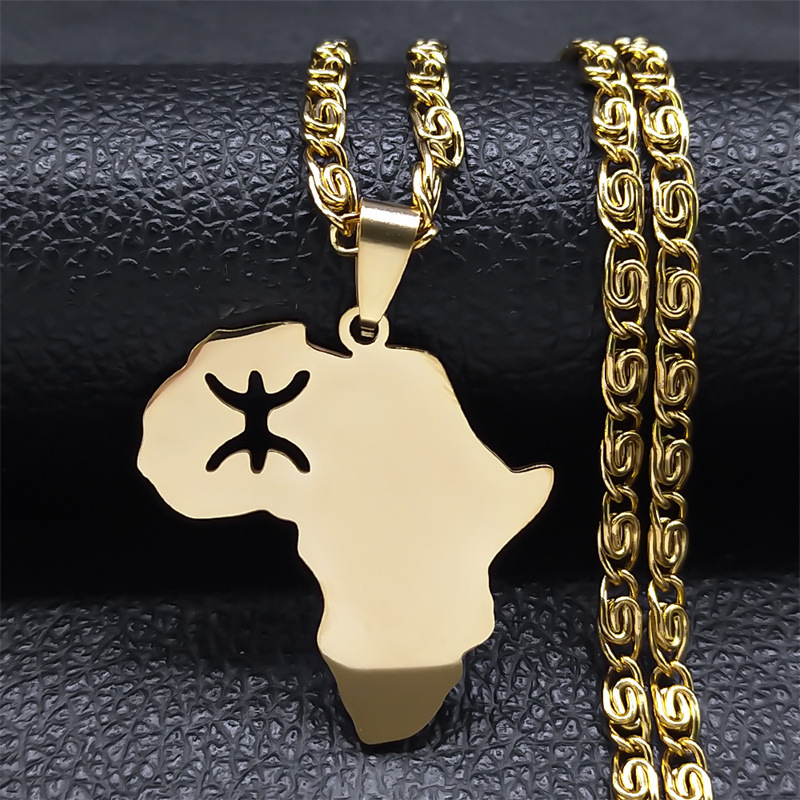 ベルベル人アフリカ地図ネックレス女性男性ステンレス金色アマジグアルファベットネックレスアクセサリー